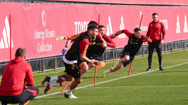 "Mamma mia", il commento di mister De Rossi al termine di un esercizio concluso da Pellegrini con lo scavetto. Inoltre durante l'allenamento la squadra ha svolto un esercizio legato alla velocità e il gruppo del capitano è arrivato ultimo, motivo per cui il numero 7 è stato costretto a eseguire alcuni piegamenti come penitenza.