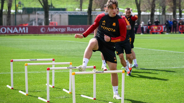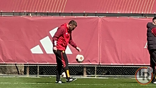 11.56 - Mister Daniele De Rossi si intrattiene con dei palleggi
