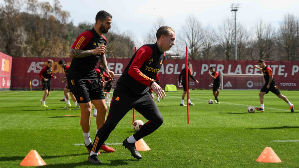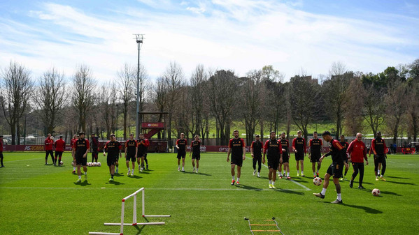 DA TRIGORIA ANNALISA FERRANTE - Giornata di vigilia e, di conseguenza, di rifinitura per la Roma che domani sarà ospite del Brighton nel ritorno degli ottavi di Europa League. Daniele De Rossi terrà la seduta di rifinitura questa mattina a Trigoria prima di volare, nel pomeriggio, per l'Inghilterra.