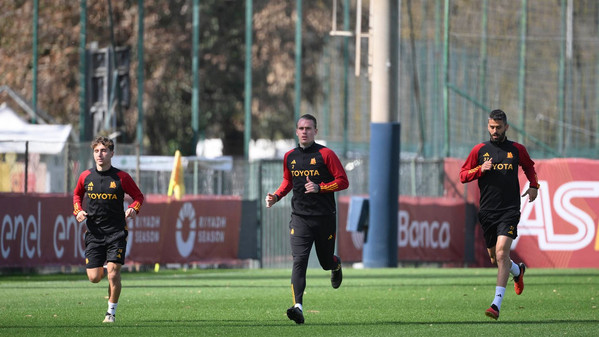 Questa mattina la Roma si è allenata al centro sportivo 'Fulvio Bernardini' in vista del ritorno di Europa League che giovedì la vedrà ospite del Brighton. De Rossi non ha potuto contare ancora su Smalling e Renato Sanches, ancora esclusi dal lavoro in gruppo a cui invece ha partecipato regolarmente Paulo Dybala, nonostante il fastidio muscolare che aveva accusato nel secondo tempo contro la Fiorentina.