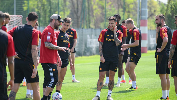 Roma in campo per la rifinitura. Dopo la vittoria in Europa League col Milan, domani alle 18.00 i giallorossi saranno ospiti dell'Udinese nella 32esima giornata di campionato. La squadra, che si allena a Monzello dopo la trasferta di Milano, è scesa in campo nel pomeriggio nel centro sportivo del Monza per svolgere la seduta di rifinitura: tra i sorrisi i giallorossi hanno lavorato tra palestra e campo. Gli scatti dell'allenamento odierno: