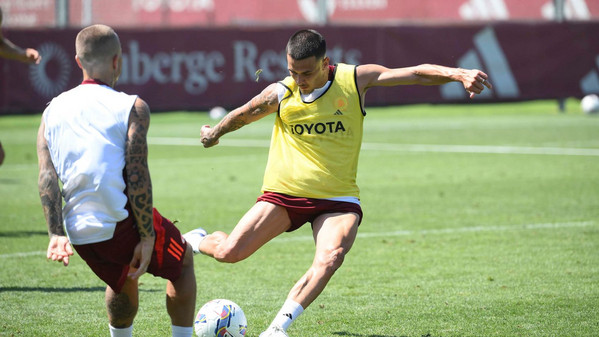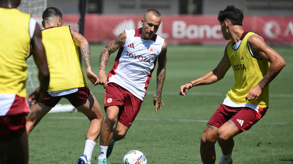 Oggi a Trigoria nuovo giorno di preparazione estiva per la Roma di Daniele De Rossi, come sempre sotto un sole cocente. Il gruppo ha lavorato sia al mattino che al pomeriggio, dividendosi tra palestra e campo, dove ha svolto diversi "small sided games", partite a campo ridotto con regole particolari.