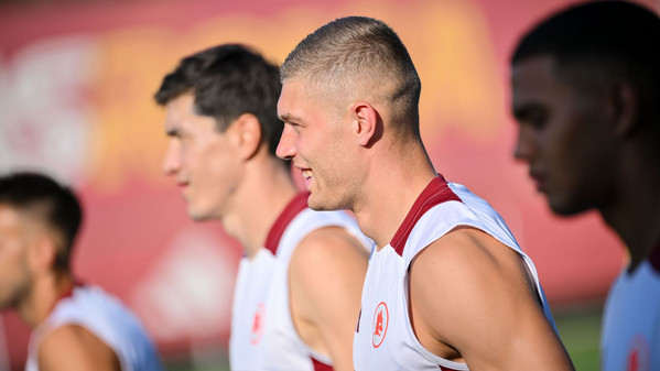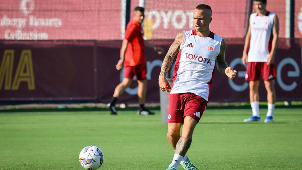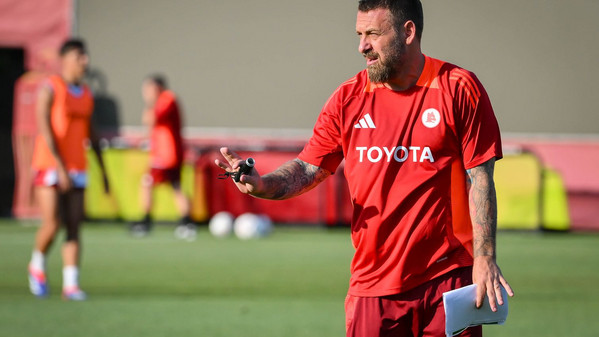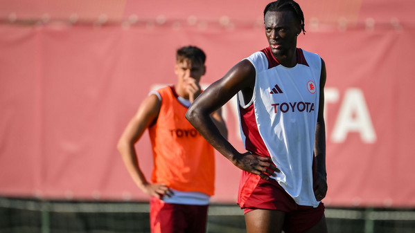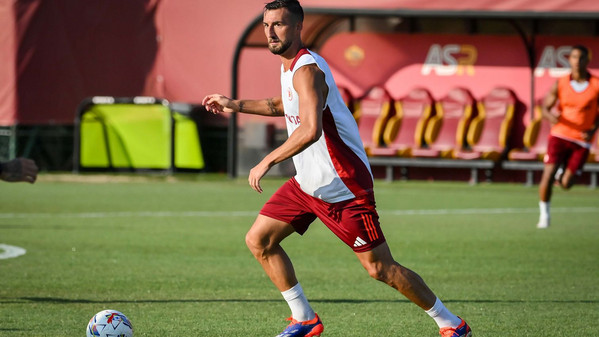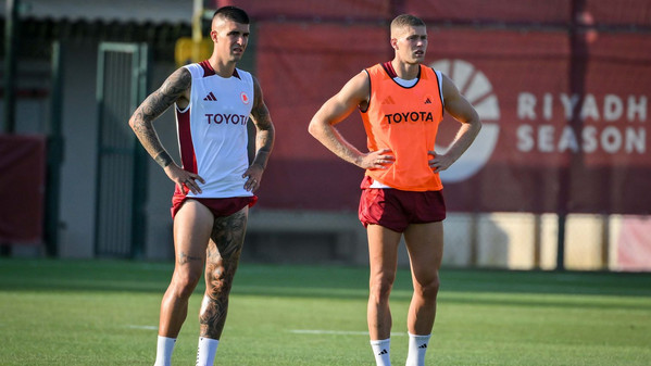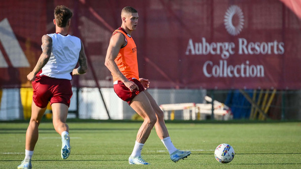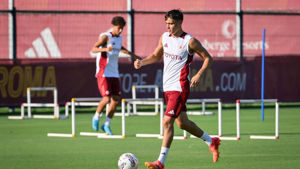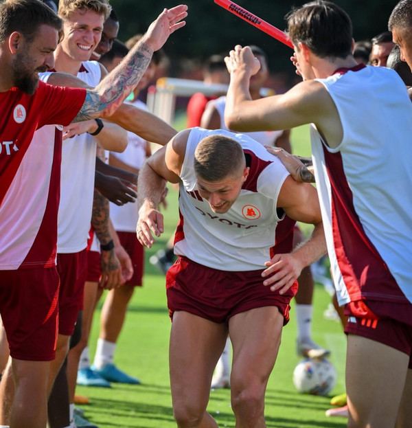 Prosegue al 'Fulvio Bernardini' di Trigoria la preparazione della Roma in vista della quarta amichevole pre-campionato in programma domani pomeriggio a Rieti contro l'Olympiakos. Nella seduta pomeridiana Daniele De Rossi ha abbracciato anche Artem Dovbyk, arrivato ieri nella Capitale e da oggi ufficialmente un nuovo giocatore della Roma: l'attaccante, dopo essere stato accolto scherzosamente dai compagni, ha svolto il primo allenamento in gruppo disputando la partitella finale, poi vinta in squadra con Sangaré, Smalling, Kumbulla, El Shaarawy, Joao Costa, Dahl, Pisilli, Dybala, Bove e Ryan. Anche il ds giallorosso Florent Ghisolfi ha assistito alla seduta odierna. Gli scatti: