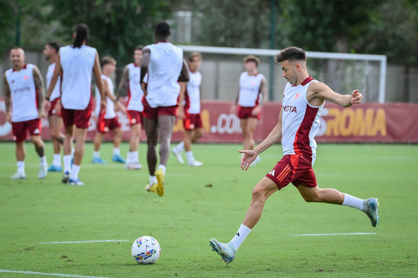 Via al campionato: la Roma inizia da Cagliari il suo cammino in Serie A sfidando in Sardegna la squadra di Davide Nicola. Alla vigilia della sfida, dopo la conferenza stampa di Daniele De Rossi, i giallorossi hanno svolto l'allenamento di rifinitura tra i sorrisi al 'Fulvio Bernardini' di Trigoria prima di partire per Cagliari. Gli scatti della seduta pomeridiana: