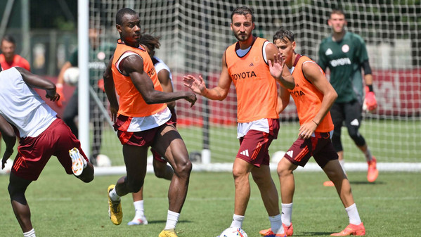 In mattinata la Roma si è divisa tra parte del lavoro in campo e un'altra in palestra: è tornato ad allenarsi con la squadra Eldor Shomurodov, dopo la partecipazione alle Olimpiadi.