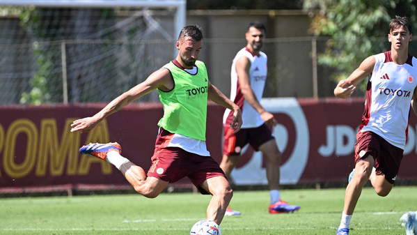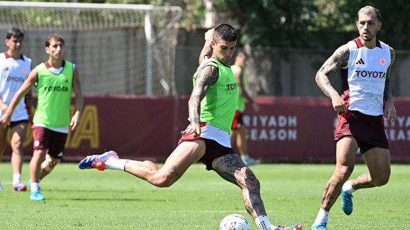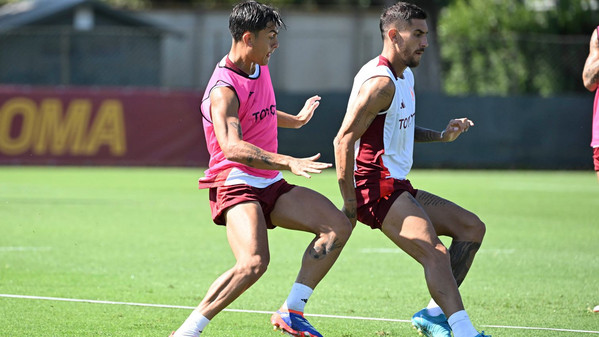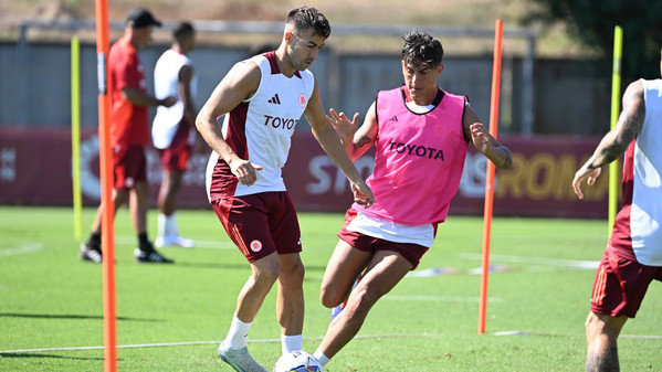 Come di consueto durante la seduta in campo si sentono i suggerimenti di De Rossi e del suo staff: "Un tocco, dentro due tocchi", le indicazioni dei componenti dello staff durante un'esercitazione. "Bravo Mancio (Mancini, ndr), bravo Edo (Bove, ndr)", dice il tecnico. Durante la partitella, tra le voci dei giocatori che si chiamano l'uomo o si danno consigli, si avverte anche De Rossi: "Samu go" (in riferimento a Dahl, ndr), poi "giusto Zeki, giusto" a Celik per l'aggancio e il cross dopo una bella apertura di Paredes. Si conclude con "bello, Tammy" in direzione di Abraham per il gol dopo una bella imbucata di Cristante.