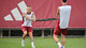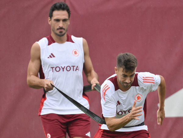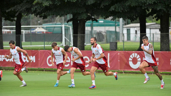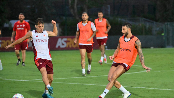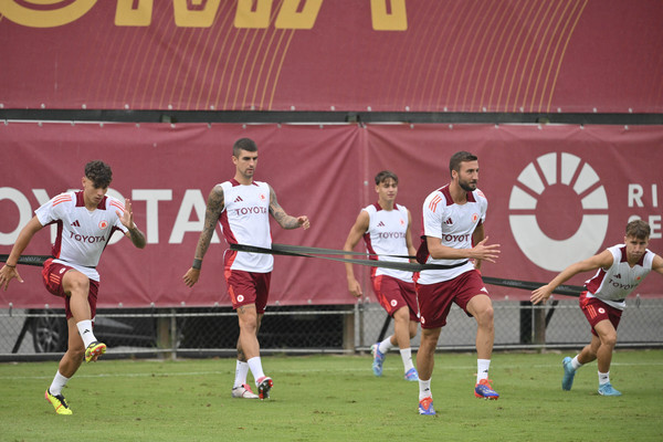 L'allenamento è ad alta intensità ed è basato su dei torelli in movimento: "Arriva, arriva, arriva - le indicazioni dello staff tecnico -. Andiamo Saud (Abdulhamid, ndr), andiamo! Vai Mancio, forte, sprinta, sprinta. Bravo. Dai Mario (Hermoso, ndr)". Poi parla anche il mister: "Bravi, bravi, Accorcia, accorcia". "In sei in questo quadrato", dice un membro dello staff, con De Rossi che chiede ai calciatori di essere "veloci, veloci".