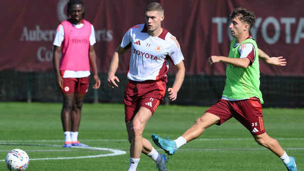 La Roma si è allenata questa mattina in vista del posticipo domenicale che la vedrà rientrare dalla pausa sfidando l'Inter all'Olimpico. Come ieri, nel reel pubblicato su Instagram dagli account giallorossi, si vedono Artem Dovbyk e Paulo Dybala scendere le scalette verso l'ingresso al campo insieme al resto della squadra. Da segnalare che Enzo Le Fée è tornato ad allenarsi senza tutore al ginocchio destro.