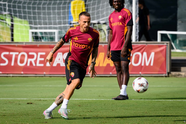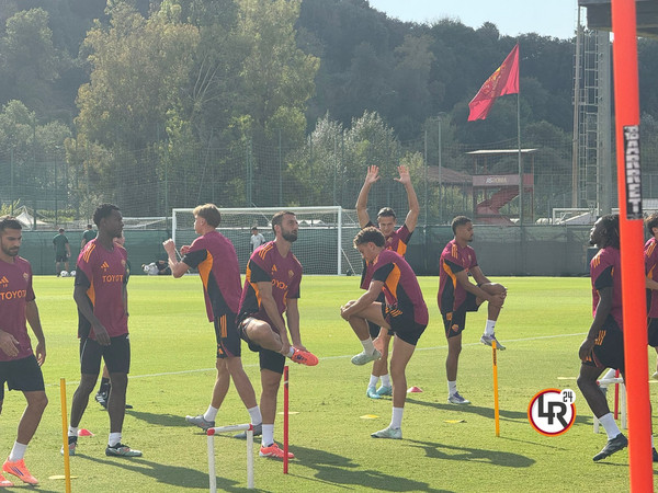 15:25 - Inizia la seduta di rifinitura: la squadra è appena scesa in campo: assenti Paulo Dybala e Leon Bailey. Presente Gianluca Mancini, il quale ha un cerotto sul volto dopo il colpo ricevuto contro l'Hellas Verona.