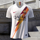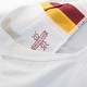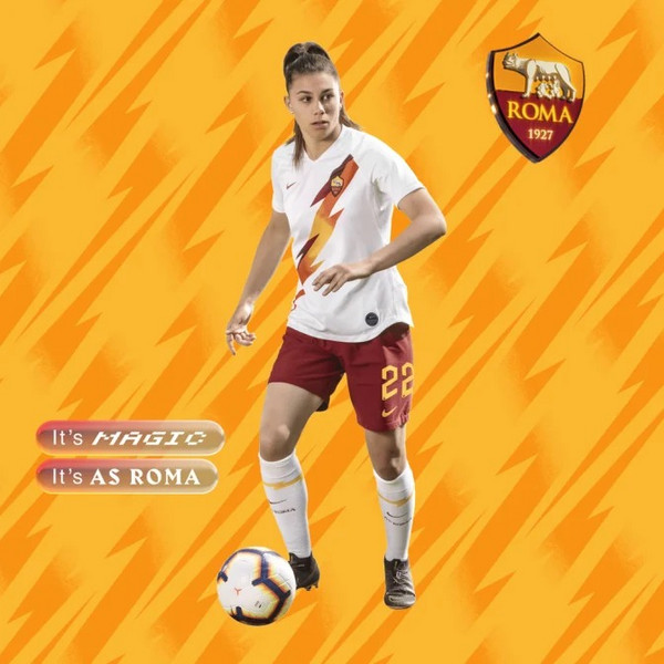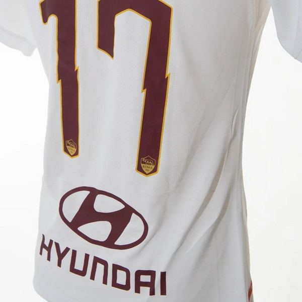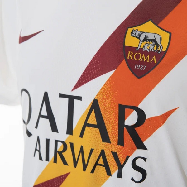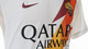 La divisa è completata da pantaloncini rossi e calzettoni bianchi con un fulmine orizzontale giallo, lo Swoosh Nike e la scritta “‘AS Roma” in rosso.